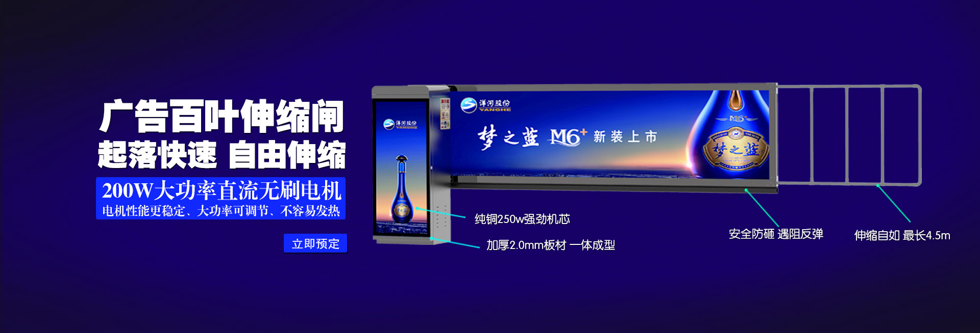 公司創(chuàng)建于2010年,是國內(nèi)智能出入管理系統(tǒng)行業(yè)最具規(guī)模的集研發(fā)設(shè)計、生產(chǎn)制造、營銷推廣于一體的品牌企業(yè)之一。公司主打產(chǎn)品為拉布燈箱閘、車牌識別道閘一體機、廣告伸縮道閘、百葉廣告道閘、直桿道閘、柵欄道閘、折臂道閘、智能人行門、車牌識別、廣告護欄等。